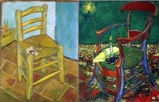 빈센트는 동생 테오를 부추겨 폴 고갱을 불러 함께 작업하기를 희망했다. 서로의 자화상을 그려 교환했는데, 그는 마치 승려처럼 구도자의 모습으로 표현하였다. 레미제라블의 장발장 처럼 나타내고 싶었다는 폴 고갱이 보낸 자화상과는 아주 대조적이다. 두 개의 의자 그림도 마찬가지이다. '빈센트의 방'을 그린 그는 누군가와 함께 사는 가정을 원했던 마음이 드러난다.